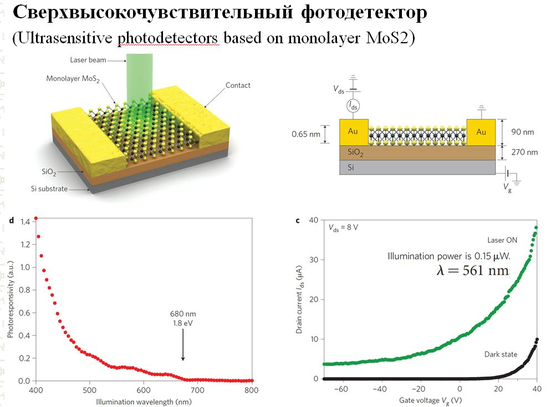9 Сверхвысокочувствительный детектор на молекулярном слое дисульфида молибдена. Чем определяется правая граница длины волны детектируемого излучения?