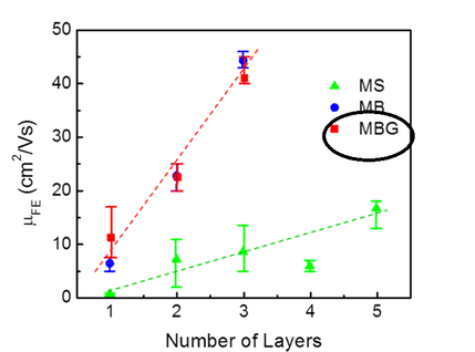 11 Гибкий прозрачный полевой транзистор на основе молекулярных слоев дисульфида молибдена, графена и нитрида бора. Как влияет кол-во слоев дисульфита молибдена на подвижность носителей тока.