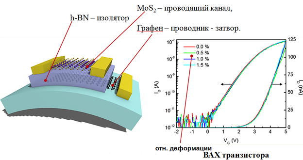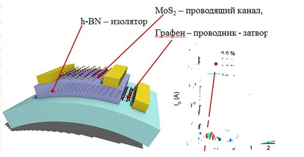 10 Гибкий прозрачный полевой транзистор на основе молекулярных слоев дисульфида молибдена, графена и нитрида бора. Принцип работы, функции материалов в структуре транзистора.