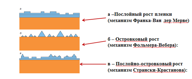 Существуют 3 механизма роста тонких плёнок: