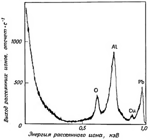 Типичный вид спектра рассеяния медленных ионов He+ с энергией 1 кэВ на поверхности сплава Al, Cu Pb, полученный для угла рассеяния θ = 90 , представлен на рисунке.