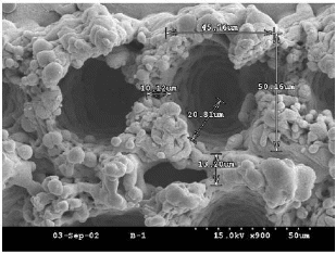 Лазер создаёт поверхность с сотовой структурой, с глубокими и ровными и маленькими порами, в то время как поверхность с машинной обработкой представляет собой относительно ровную поверхность с типичными микроскопическими желобками. Расстояние между порами у покрытия с лазерной обработкой составило 10-12 мкм.