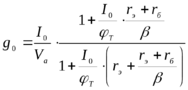 Для токового зеркала, получившего широкое распространение на практике, выходная проводимость может быть вычислена по формуле: