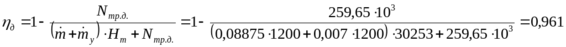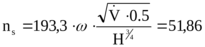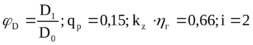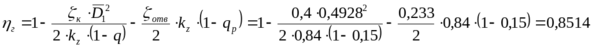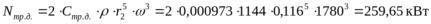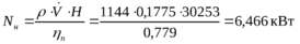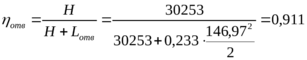 . Так как вход двухсторонний и насосы горючего и окислителя расположены по одну сторону от турбины, в формулу подставляют соответствующую мощность и объемный расход, равный половине расхода окислителя через насос.