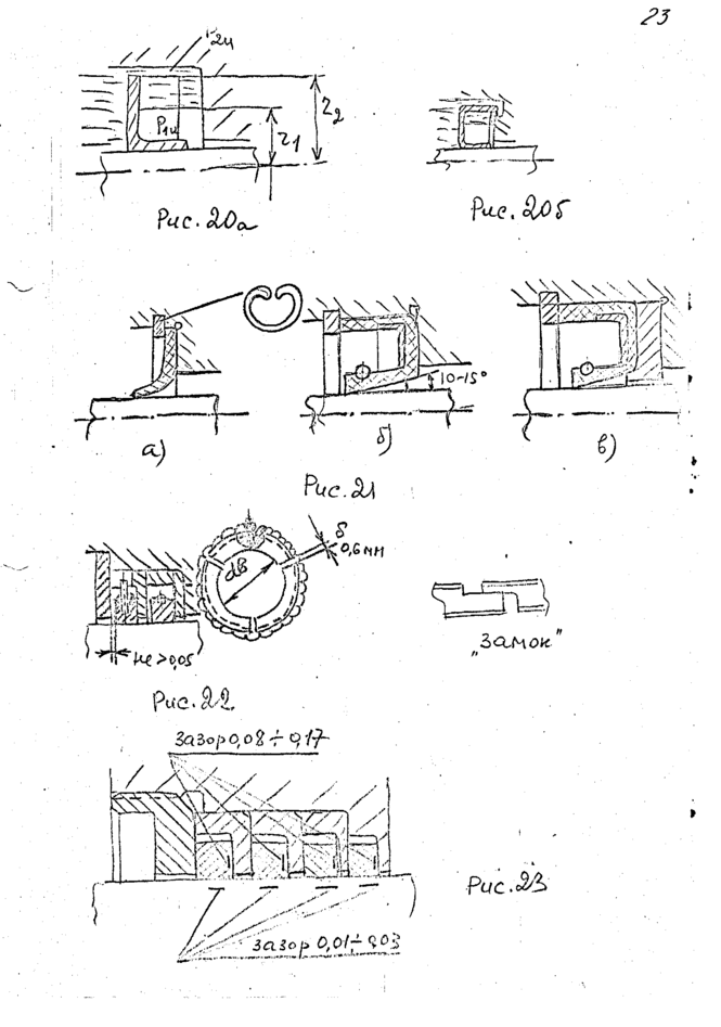При нагреве внутреннее давление повышается, увеличивая см на уплотняемых поверхностях. Иногда применяют распорное полое кольцо, давление внутри которого поддерживается равным давлению уплотняемой жидкости / газа /. Для этого внутренняя полость кольца соединена с уплотняемой полостью радиальными сверлениями в кольце.