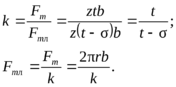 Определение меридиональной скорости с учетом толщины лопаток в сечении колеса, расположенном на произвольном радиусе, проведем на примере центробежного колеса. Проходное сечение колеса ( радиус r ) обозначим Fт, проходное сечение на том же радиусе r с учетом толщины лопаток обозначим Fтл. Отношение Fт/ Fтл представляет собой коэффициент сужения сечения; обозначим его k. Сечения Fт и Fтл можно вычислить через шаг лопаток t (t=2r/z, где zчисло лопаток);
