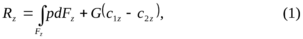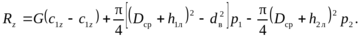 Зная распределение давления по элементам контрольной поверхности, можно перейти к определению осевой силы в насосе, интеграл в уравнении (1) представить через составляющие осевой силы в виде: