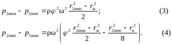 Максимальный перепад давлений, удерживаемый уплотнением определится с помощью формул (3) и (4) при rж=r1имп (для большого и малого зазора соответственно)