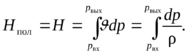 Напор водородного насоса (при свх=свых) как насоса, работающего сжимаемом рабочем теле, определяется по формуле: