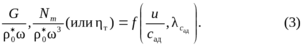 огда при необходимости можно пересчитать зависимости (3), полученные на модельном газе, в энергетические характеристики турбины, работающей на натурном газе: