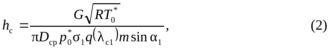 Из формулы (1) определится hc: