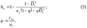 множим и разделим правую часть уравнения (12) на отношение скоростей (с1z/uп)⅔ и используем выражения (13) и (14) и сгруппируем члены. Тогда получим