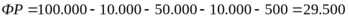 ФР = 100.000 – 10.000 - 50.000 – 10.000 – 500 = 29.500 (рублей), это прибыль
