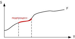Подпроцесс – плотное в отношении времени подмножество процесса. Плотное – потому что нет точек, которые не относятся к подпроцессу.