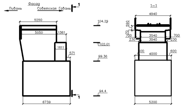 Береговые опоры (опора №0 и №3) массивные монолитные индивидуальной проектировки. Фундаменты устоев выполнены из бутобетона мелкого заложения на естественном основании. Оголовки опор и тело выполнены из монолитного железобетона.