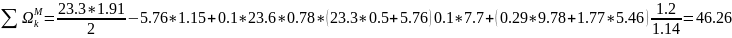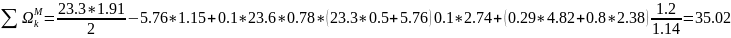 - суммарная площадь приведенной линии влияния горизонтального (бокового) давления на устой от подвижного состава и плечо равнодействующей.