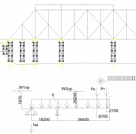 где Wj – приходящаяся на временную опору расчетная горизонтальная нагрузка от давления поперечного ветра на пролетное строение и кран W1 и полная расчетная горизонтальная нагрузка от давления поперечного ветра на опору W2, кН;