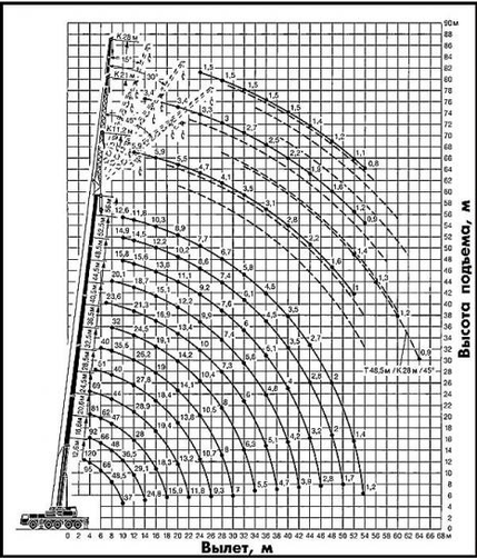 Рис.Г.1 Грузоподъемность автокрана Liebherr LTM1100