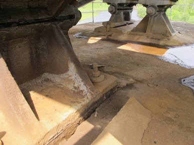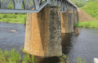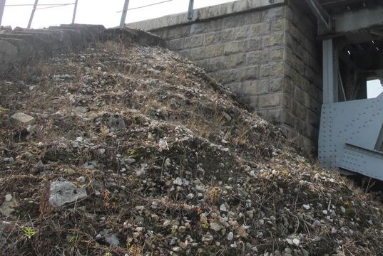 За годы эксплуатации моста укрепление откосов частично разрушилось, частично засыпалась грунтом и щебнем балласта .