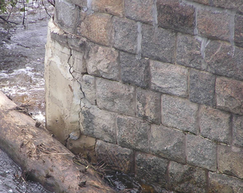 Рисунок 1.11 – Разрушение каменной кладки в уровне переменного горизонта воды