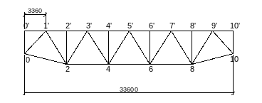 Расчетная схема металлического пролетного строения со сквозными фермами, с нумерацией узлов, приведена на рисунке 2.1. Схемы и составы сечений каждого отдельного элемента фермы приведены в таблице 2.1. Все основные параметры линий влияний элементов фермы сведены в таблице 2.2.