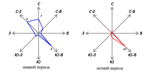Рис. 1. – Розы ветров в зимний и летний периоды