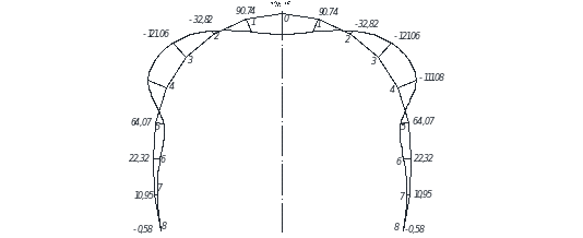 Расчетная схема железобетонной обделки подковообразного очертания формируется аналогично пункту 3.2.