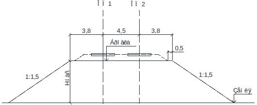 | Поперечный профиль | Длина отсека, км | Рабочая отметка, м | Площадь зем- полотна, м2 | Объём зем- полотна, м3 | ||||||||