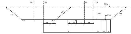 | Поперечный профиль | Длина отсека, км | Рабочая отметка, м | Площадь зем- полотна, м2 | Объём зем- полотна, м3 | ||||||||