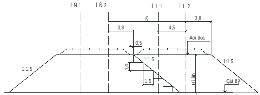 Рисунок 2.1 – Расчётная схема для определения площади поперечного сечения новой насыпи