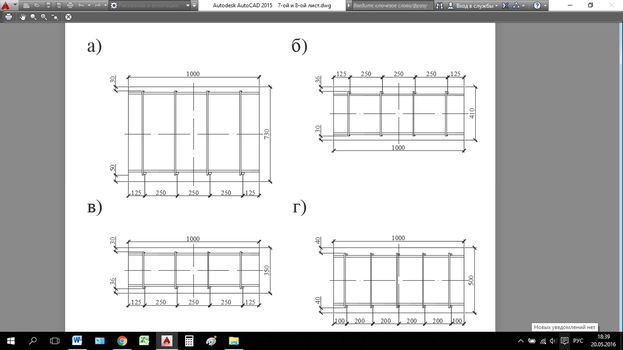 а – сечение 1-1; б – сечение 2-2; в – сечение 3-3; г – сечение 4-4