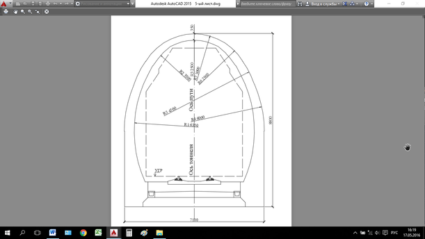 Рисунок В.1 – Тоннельная обделка тип Iк в кривой при крепости породы f = 5,5
