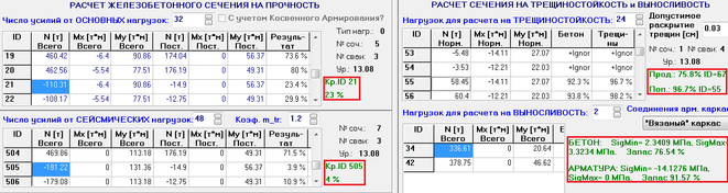 Рис. 3.10. – Результаты расчета армирования столбов береговой опоры