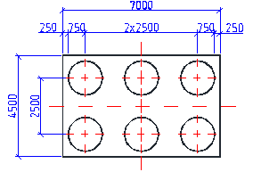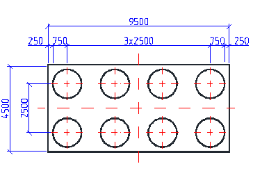 Рисунок 5.7 - Основные размеры ростверка и расположения буронабивных столбов