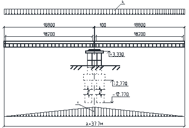 В первом варианте принята схема 18,2х6. Металлические пролетные строения с ездой на балласте по типовому проекту серии 3.501-49. полной длиной Lп=18,8м.