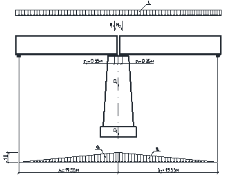 – доля вертикальной нагрузки от подвижного состава, передающаяся на многопутную опору равная 1.