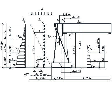 Расчетная схема загружения береговой опоры по положению равнодействующей приведена на рисунке 4.2.