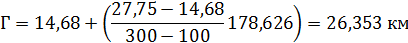 Пользуясь табл. 5 прил. 1 находим интерполяцией глубину зоны возможного заражения СДЯВ:
