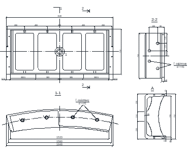 Обделка на подводном участке имеет круговое очертание и выполнена из чугунных тюбингов. Конструкция тюбинговой обделки со всеми размерами приведена на рисунке 1.4, конструкция тюбинга представлена на рисунке 1.5.