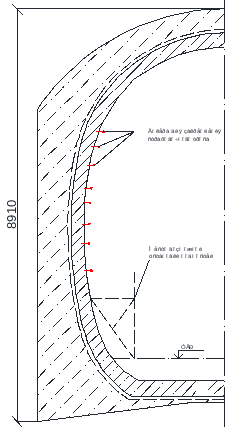 Результаты расчетов тоннельной обделки кругового очертания показали, что она обладает недостаточной несущей способностью, что обусловлено в 1 очередь соединительных болтов тюбингов. В связи с этим был разработан проект усиления чугунной тюбинговой тоннельной обделки путем использования железобетонной оболочки;