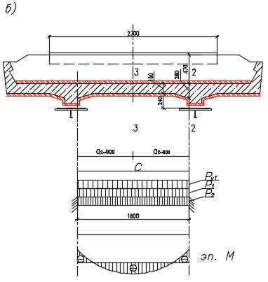 Расчетные значения изгибающих моментов возникающих в плите балластного корыта