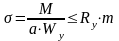 Расчет по прочности элементов, изгибаемых в одной из главных плоскостей, выполнялся согласно п.4.26 [17] по формуле