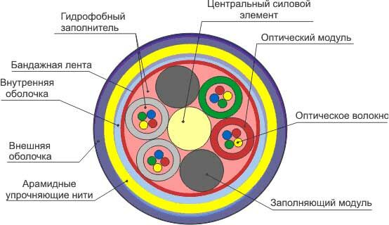 Используемый волоконно-оптический кабель связи - ОКСНМ-10-01-0,22-16(6,0).