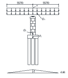 Фундамент принимаем свайный, на буронабивных столбах диаметром 1,6м. Количество столбов – 11 шт., глубина погружения столбов – 12 м.