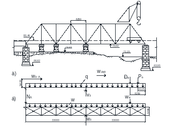 - суммарная расчетная (с коэффициентами надежности) равномерно распределенная нагрузка от веса, собираемого пролетного строения, подкрановых и транспортных путей, трубопроводов, людей, приспособлений, инструмента и мелкого оборудования, кН/м;