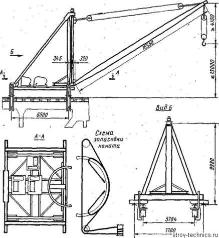Рисунок И.3 – а - Кран ЕДК-300/5; б – схема его установки на опоры