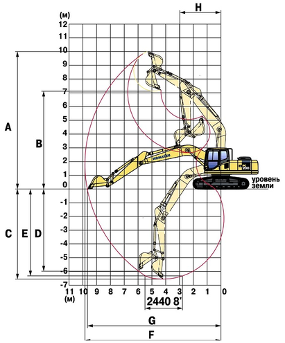 Рисунок И.5 – Рабочая зона экскаватора Komatsu PC 200