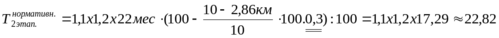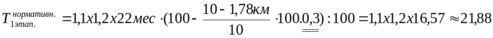 Продолжительность реконструкции станции (при общей длине укладываемых путей 1,78 км - на 1 этапе 18% от норматива 10 км, и 2,86 км (укладка) на 2 этапе - 29% от норматива 10 км) на основании п.36 выше указанной главы СНиП 1.04.03-85* с учетом метода экстраполяции (и с 30%-ым уменьшением нормы продолжительности, как того требует нормативный расчет по приложению 1 части I СНиП 1.04.03-85* - задача 3), с учетом времени на переоборудование устройств СЦБ, сопутствующего реконструкции станции (вводится коэффициент К1=1,1 на основании п.11 тех.части парагр.1* «Железнодорожный транспорт»), с учетом районного коэффициента К2=1,2 (на основании п.11 «Общих положений*» к СНиП 1.04.03-85*) составит: