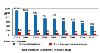 Рис.2 Динамика производственного травматизма в ОАО "РЖД" за период с 2003 по 2011 г.