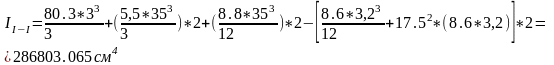 Статический момент и момент инерции определяем до верхней грани спинки чугунного тюбинга, за вычетом болтовых отверстий: